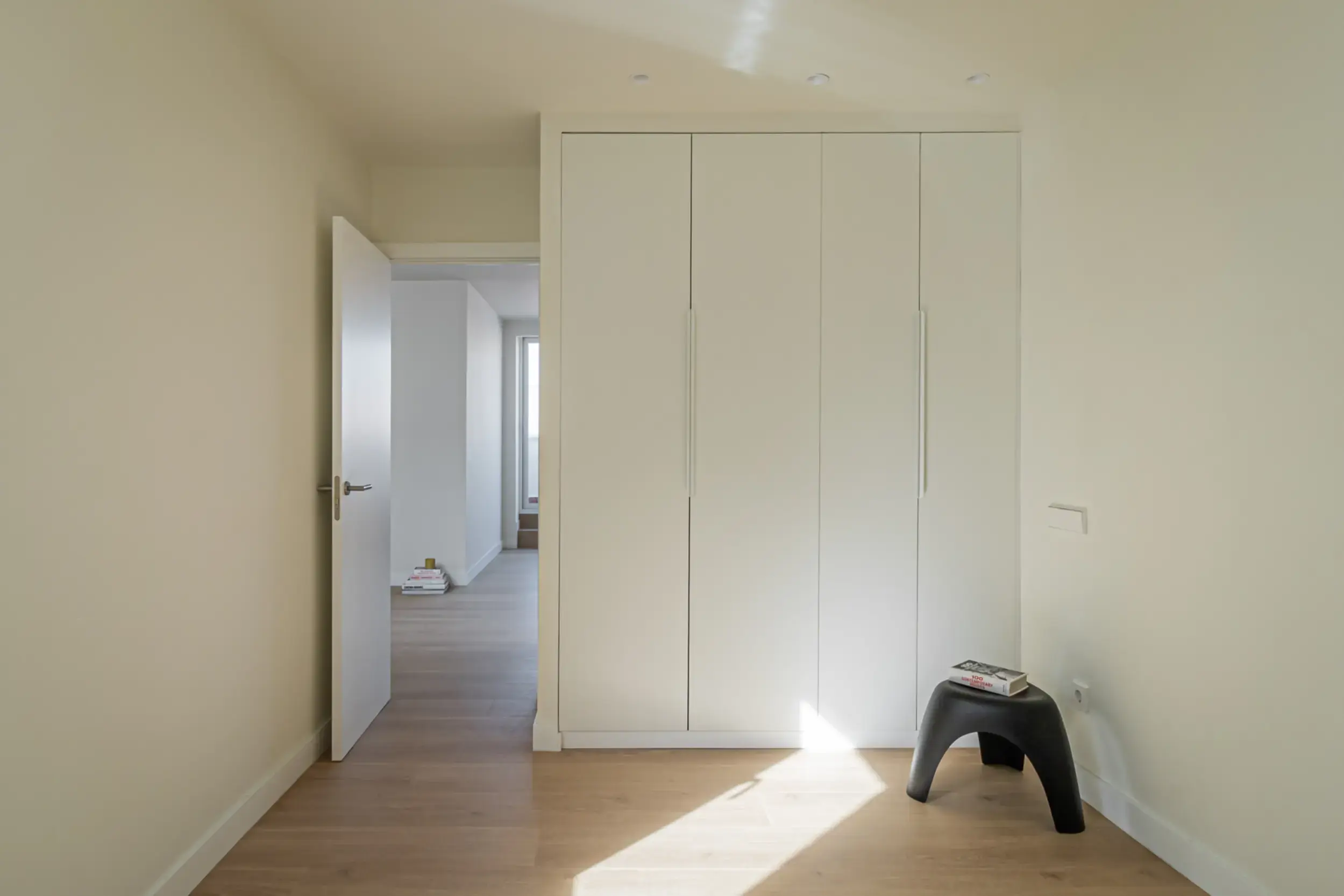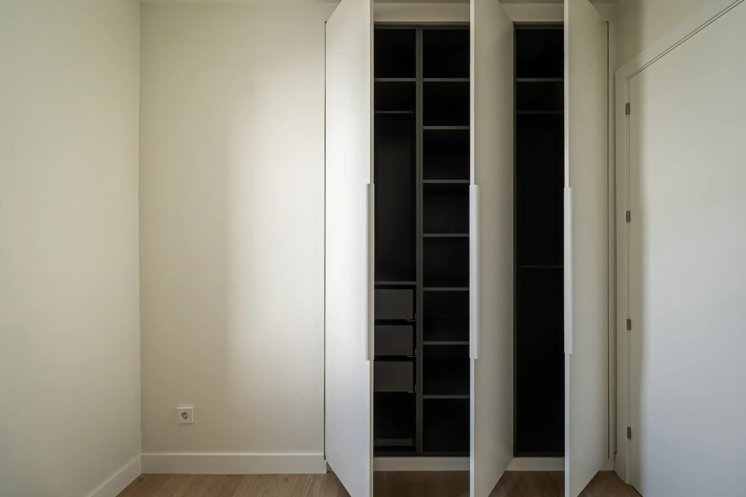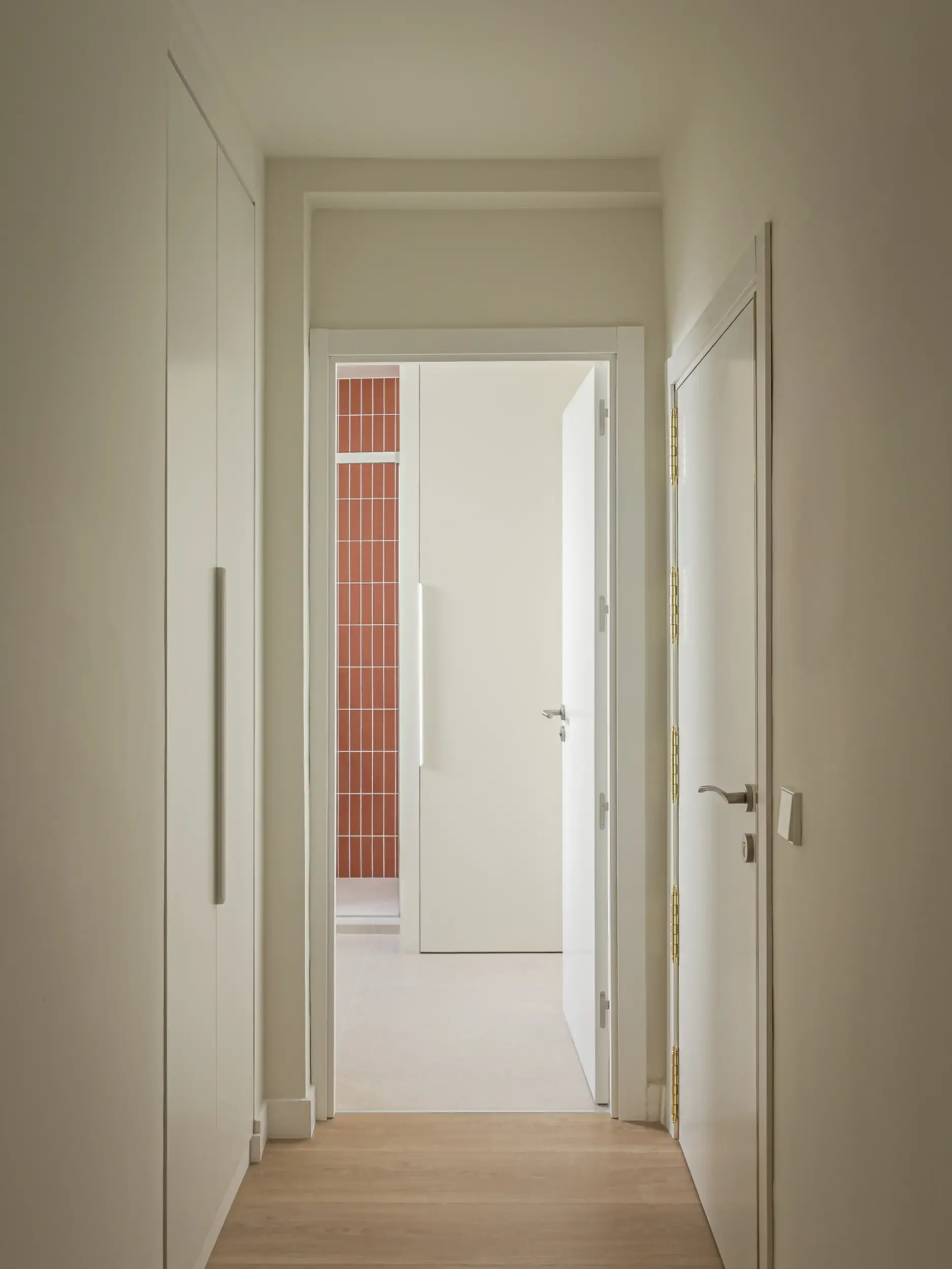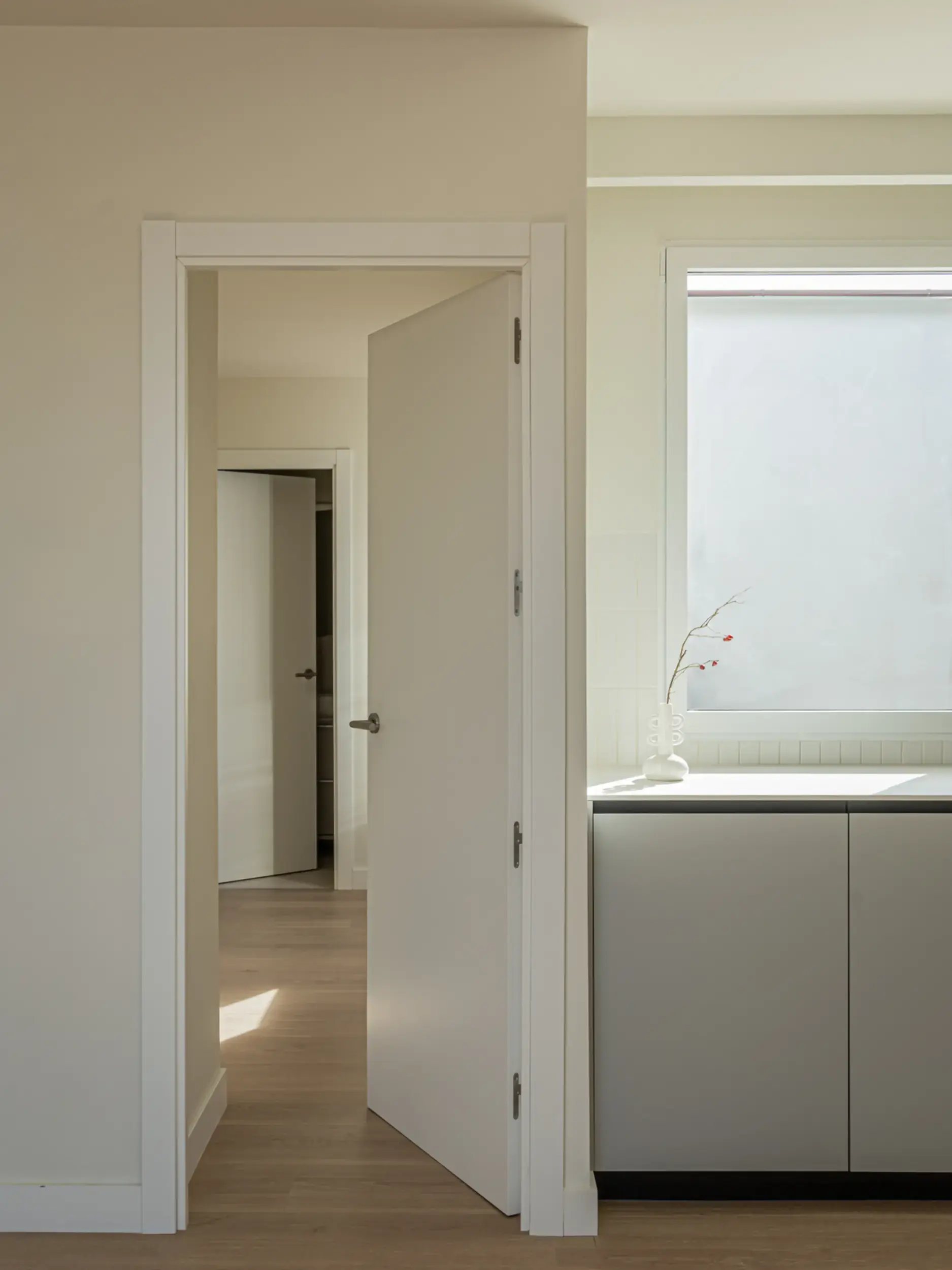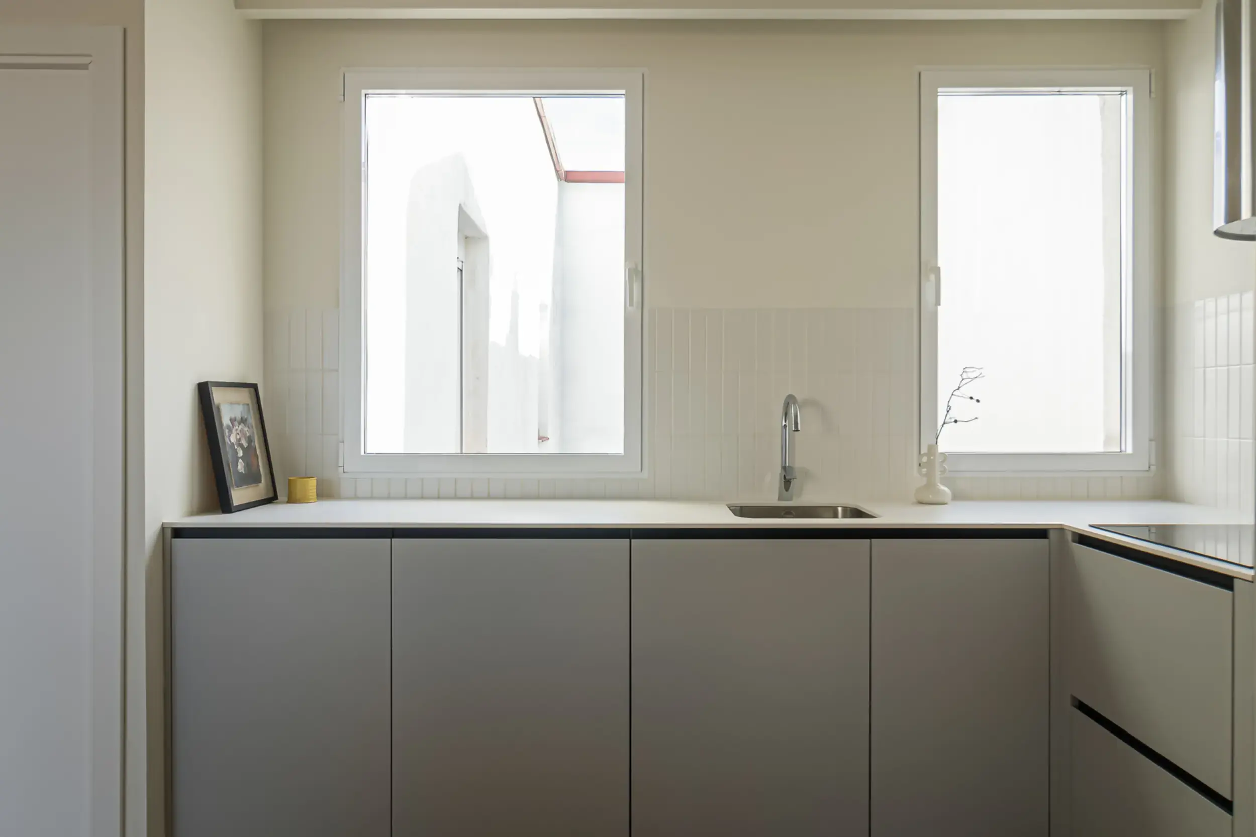 Reforma integral de un piso de 65m2, donde se invierte por completo la distribución original de la vivienda. El salón y la cocina abierta se trasladan a la fachada exterior, en busca de luz natural y amplitud, generando una conexión con el espacio exterior. Los dormitorios quedan en las zonas interiores buscando calma. Se abre por completo el espacio respecto a la distribución original, dotando al piso de una gran luminosidad.
